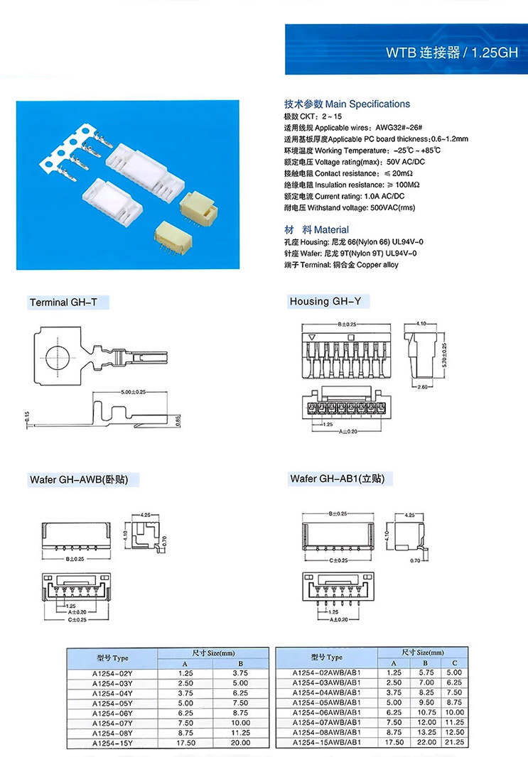 1.25GH WTB連接器