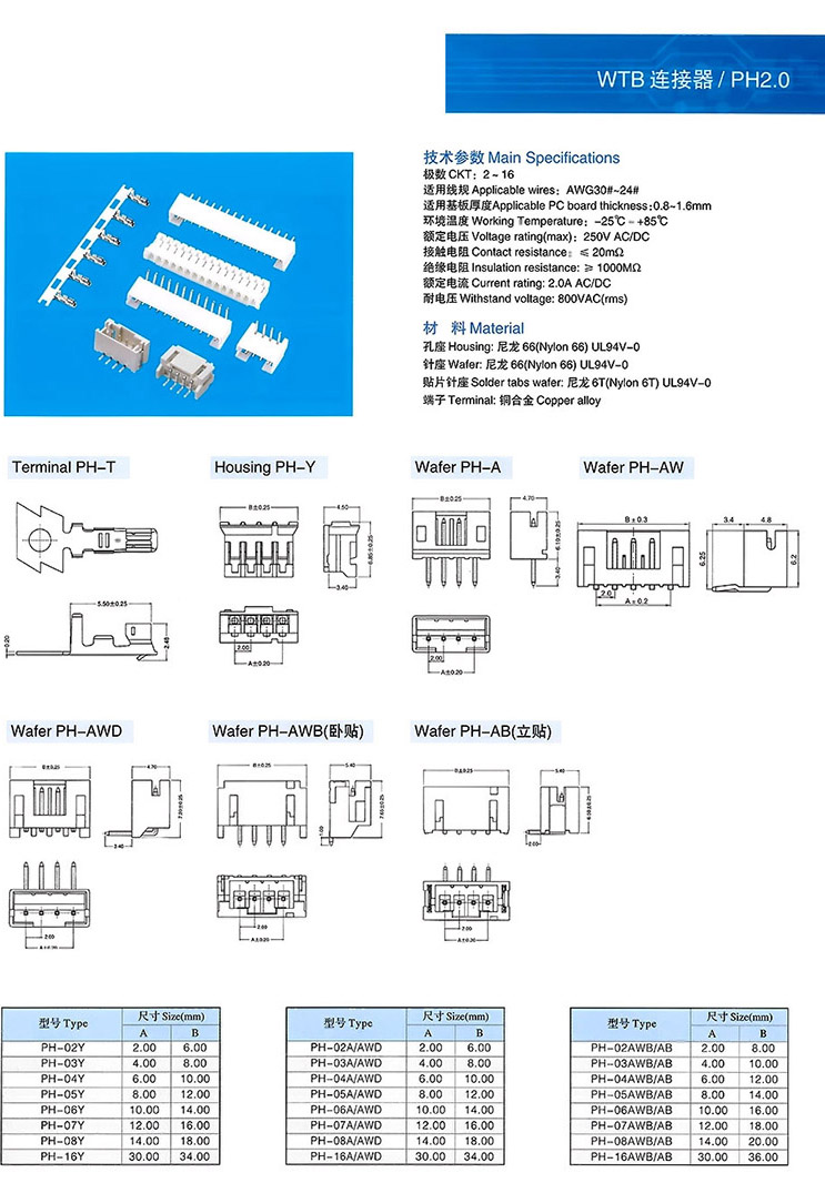 PH2.0 WTB連接器