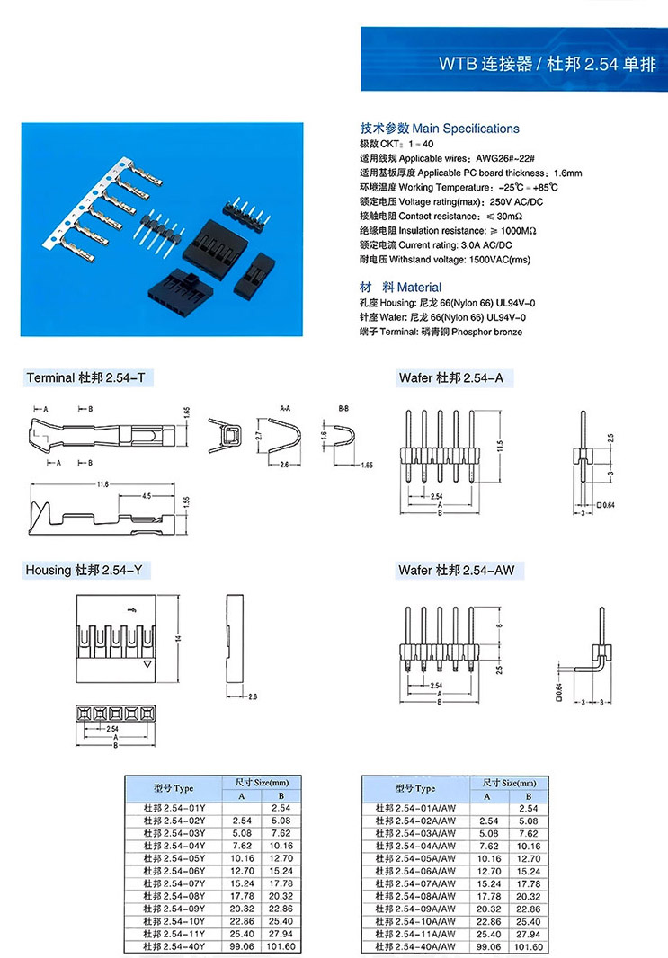 杜邦2.54單排 WTB連接器